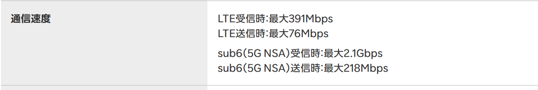こちらはL13では下り4.2Gbps、上り286MbpsとRakuten Turbo 5Gより下り最大で倍速度が違う。